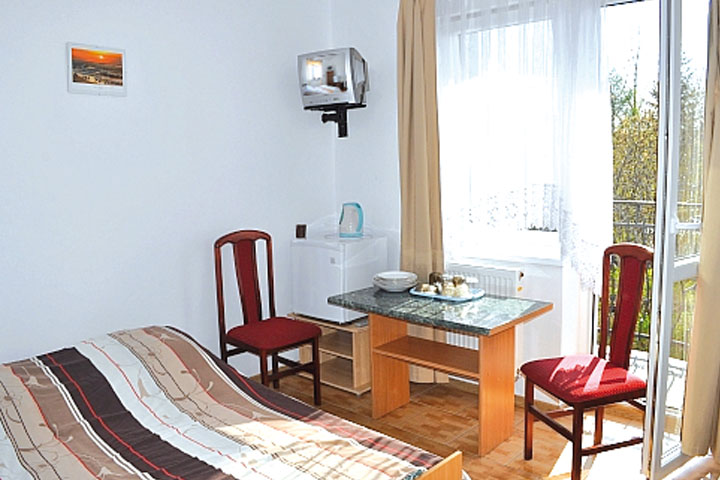 Oferujemy 12 pokoi 2-, 3-, 4-osobowych z łazienkami (prysznice z hydromasażem),